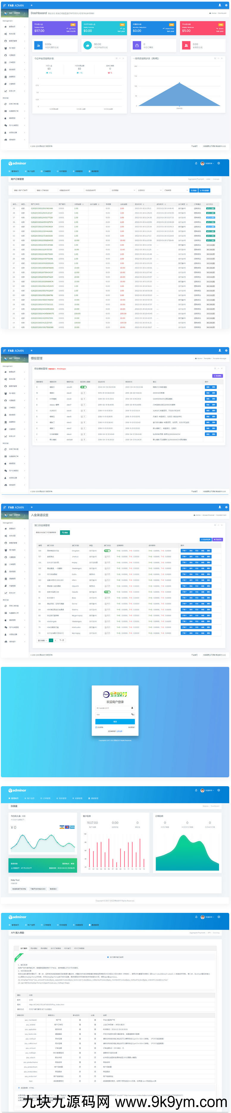【帐号类型】系统后台多类型管理员、商户代理、普通商户、接口用户;对用的板块后台都不一样相关的数据统计齐全有效。