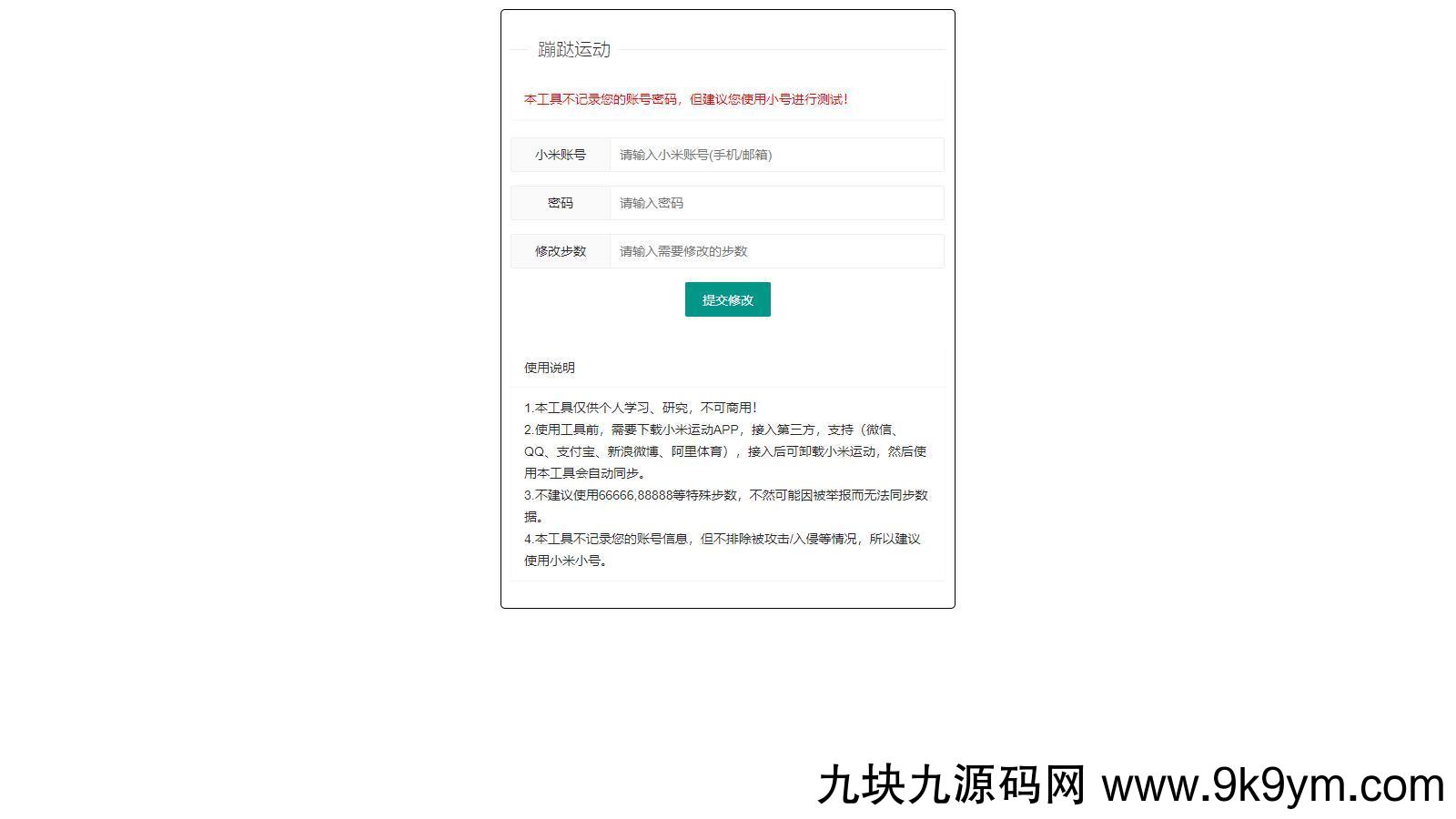 小米运动网页提交/API接口,单文件上传即用,文件名可随意修改,汉字符号均可使用方法上传到服务器/虚拟主机,直接打开url地址即可使用,因为代码是PHP输出,不支持二级目录。