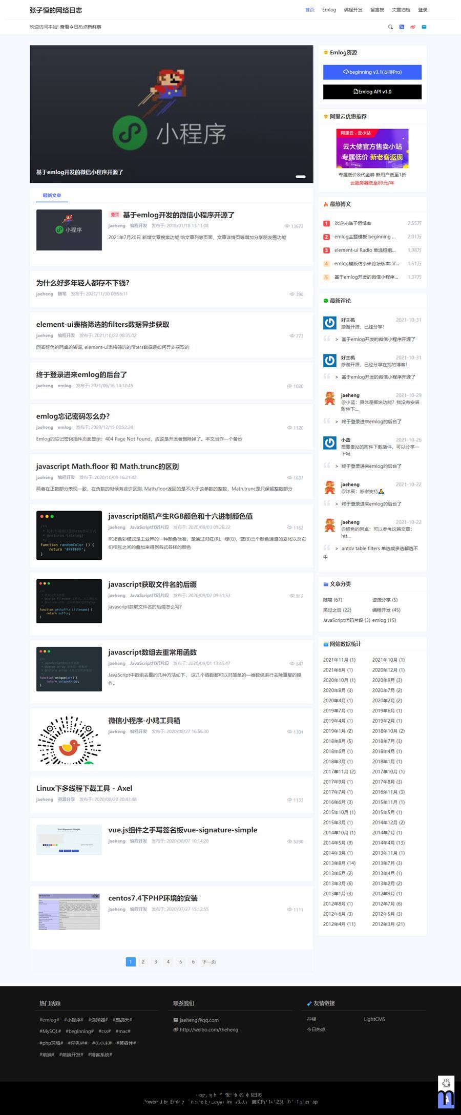 非常优秀的EMlog博客模板beginning,这是款非常优秀的emlog模板,采用自适应式设计,界面精致好看,大气美观,展示博客数据统计的个人中心类型头部,自媒体气息十足;内置5种分类文章列表页面样式,包括两栏布局、三栏布局、图片布局、视频类型布局等,适应多种排版需求;模板完美适配emlog 5.3.1版本。简洁大方,多种布局可供选择,非常适合个人博客,兼容官方Emlog6和Emlog Pro其他说明:更新到v3.1,支持Emlog Pro