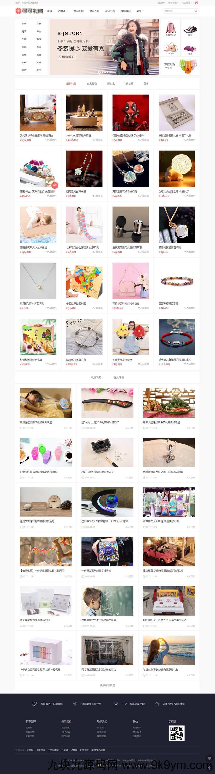 帝国CMS仿《仿礼物网》淘宝客整站模板源码,帝国CMS7.5淘宝客类整站源码,淘宝客帝国CMS模板。随着腾讯微信淘宝生态的打通,淘宝客链接可直接在微信,QQ分享,我们觉得有利淘宝客的推广。建议推广店铺为主,商品容易下架引起链接失效,除了淘宝客,也可以考虑京东联盟的商品推广。基本测试了没有大问题。大部分用了伪静态,搜索貌似有点问题。但这个不影响,很少有网民在你站内搜索商品。