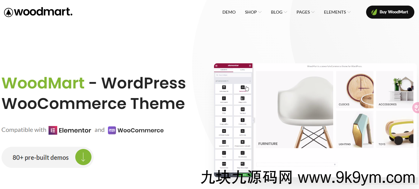 Woodmart 是一款WooCommerce商店主题,同时兼容Elementor页面编辑器插件。