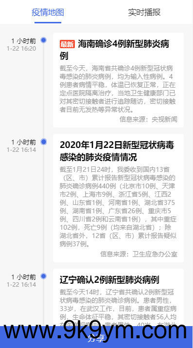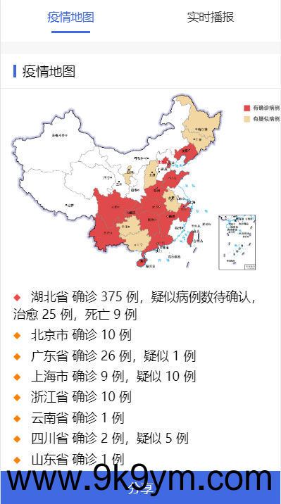 分享一款在线查看实时疫情的HTML源码数据对接的是丁香医生。