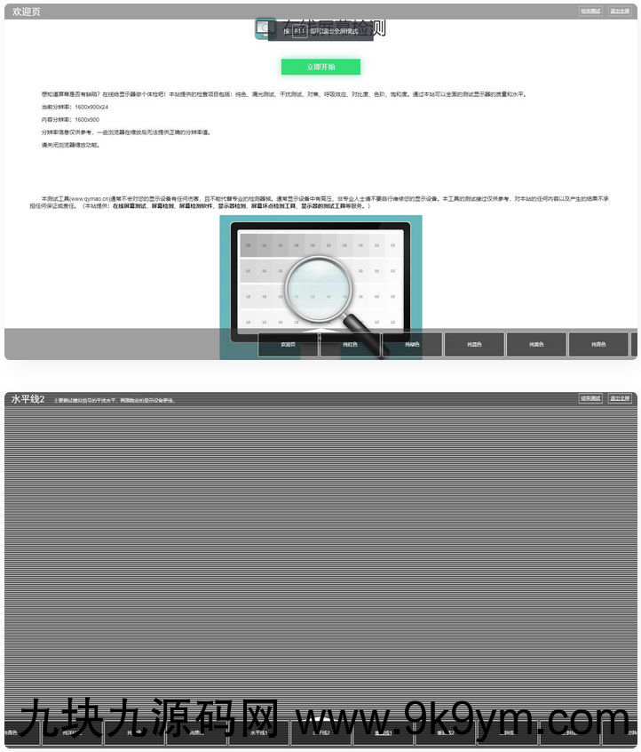 想知道屏幕是否有缺陷?在线给显示器做个体检吧!本站提供的检查项目包括:纯色、漏光测试、干扰测试、对焦、呼吸效应、对比度、色阶、饱和度。通过本站可以全面的测试显示器的质量和水平。本测试工具通常不会对您的显示设备有任何伤害,且不能代替专业的检测器械。通常显示设备中有高压,非专业人士请不要自行维修您的显示设备。本工具的测试接过仅供参考,对本站的任何内容以及产生的结果不承担任何保证或责任。(本站提供:在线屏幕测试、屏幕检测、屏幕检测软件、显示器检测、屏幕坏点检测工具、显示器的测试工具等服务。