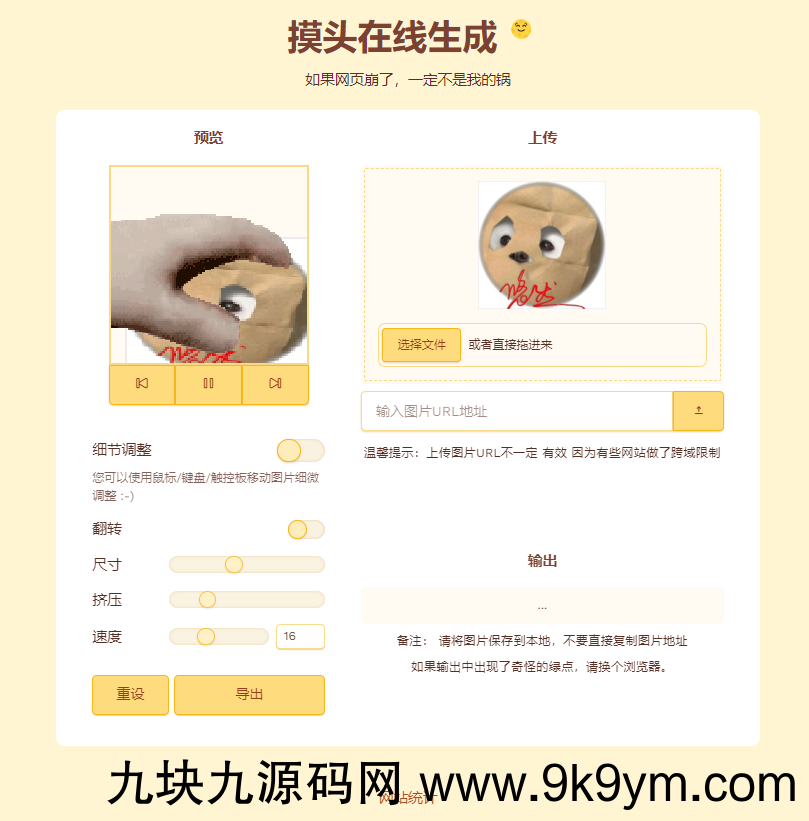 摸头GIF动态在线生成html源码,上传头像或者图片,可调整,最后导出生成GIF表情包,灰常有意思[滑稽]逗一下女朋友什么的还是可以的