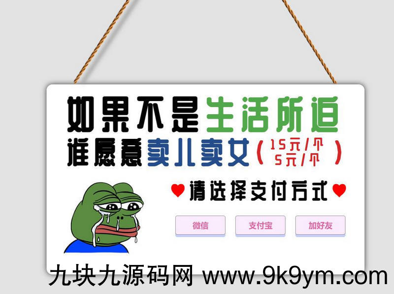 青蛙因生活所迫卖儿卖女HTML单页源码。是一款采用rem响应式布局的网页源码,它支持添加支付方式,并可用于线下摆摊支付界面。