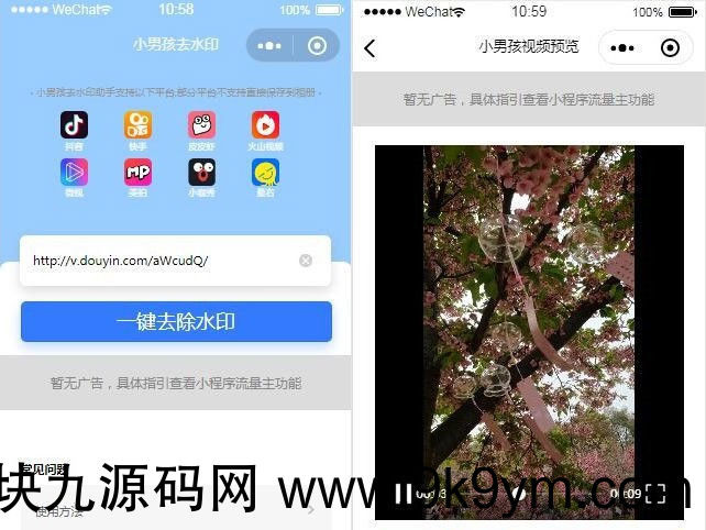 抖音去水印小程序源码独立版 无后台,接口只有抖音的