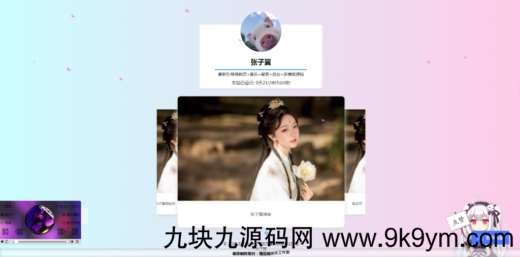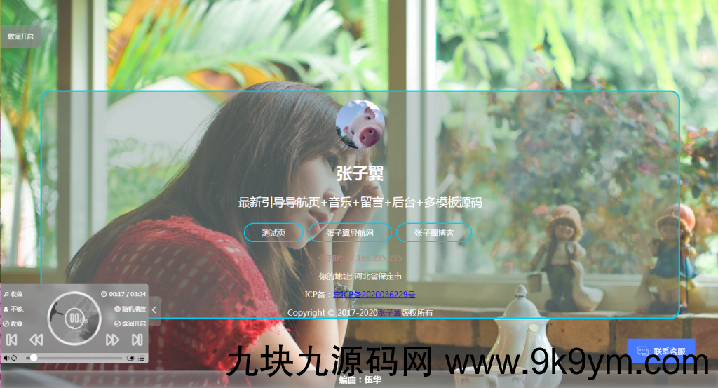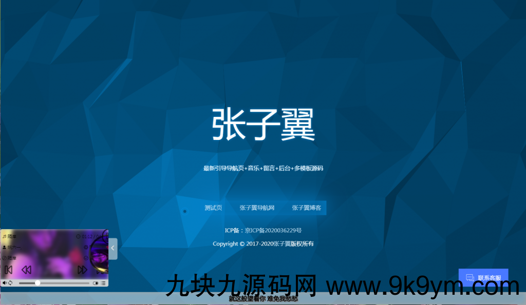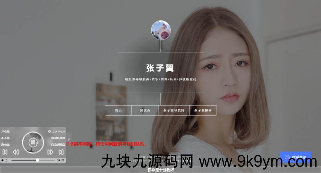 全新的模板,自适应电脑+手机,采用在线播放器,可自己设置歌单,音乐。