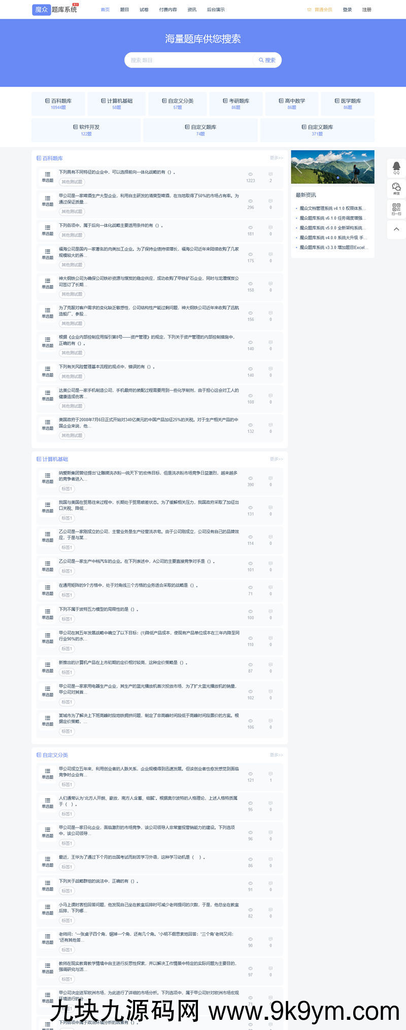 魔众题库系统基于PHP开发,可以用于题库管理和试卷生成软件,拥有极简界面和强大的功能,用户遍及全国各行各业。