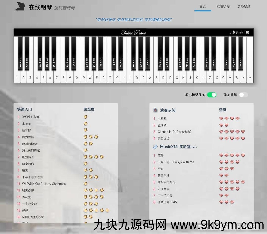 AutoPiano-在线弹钢琴网站源码,在线钢琴模拟器,自由在线弹奏虚拟钢琴,它也是所有人的绝佳音乐平台,此源码仅用于学习目的。背景图片在./static/images,另外需要在js内的0.7fc8a67cbbcb823cf89e.js和1.f9a3f1dba143d1b59ca4.js修改图片对应路径。