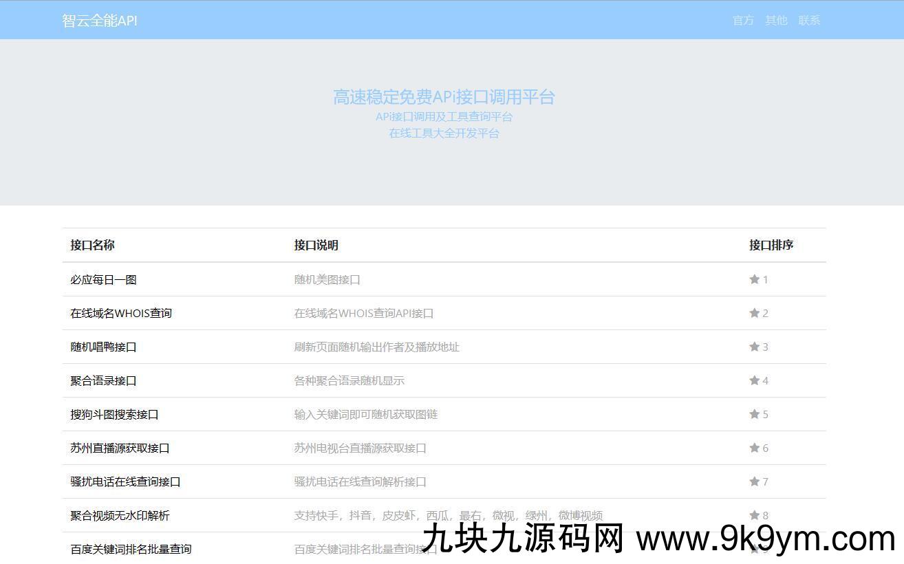 智云全能API接口PHP源码V1.4.5版本,源码全部开源,非第三方远程接口,所有接口来自各大官方数据采集和本地数据调用!可二开或增加其他接口功能!增加大量API接口采集(共计上百个API接口)修复部分API采集代码接口,优化代码。
