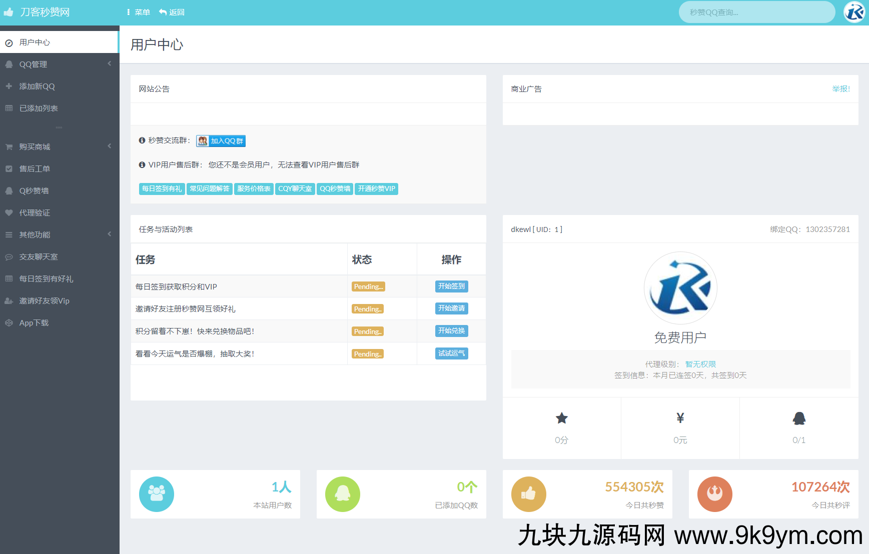 最新扣扣秒赞系统源码本地计划任务运行非云端,节省开支!分站功能,代理功能自助广告,说说秒赞说说秒评,唰说说赞唰说说评论,等等功能无需框架 插件 云电脑支持前台用户中心下单名片赞等