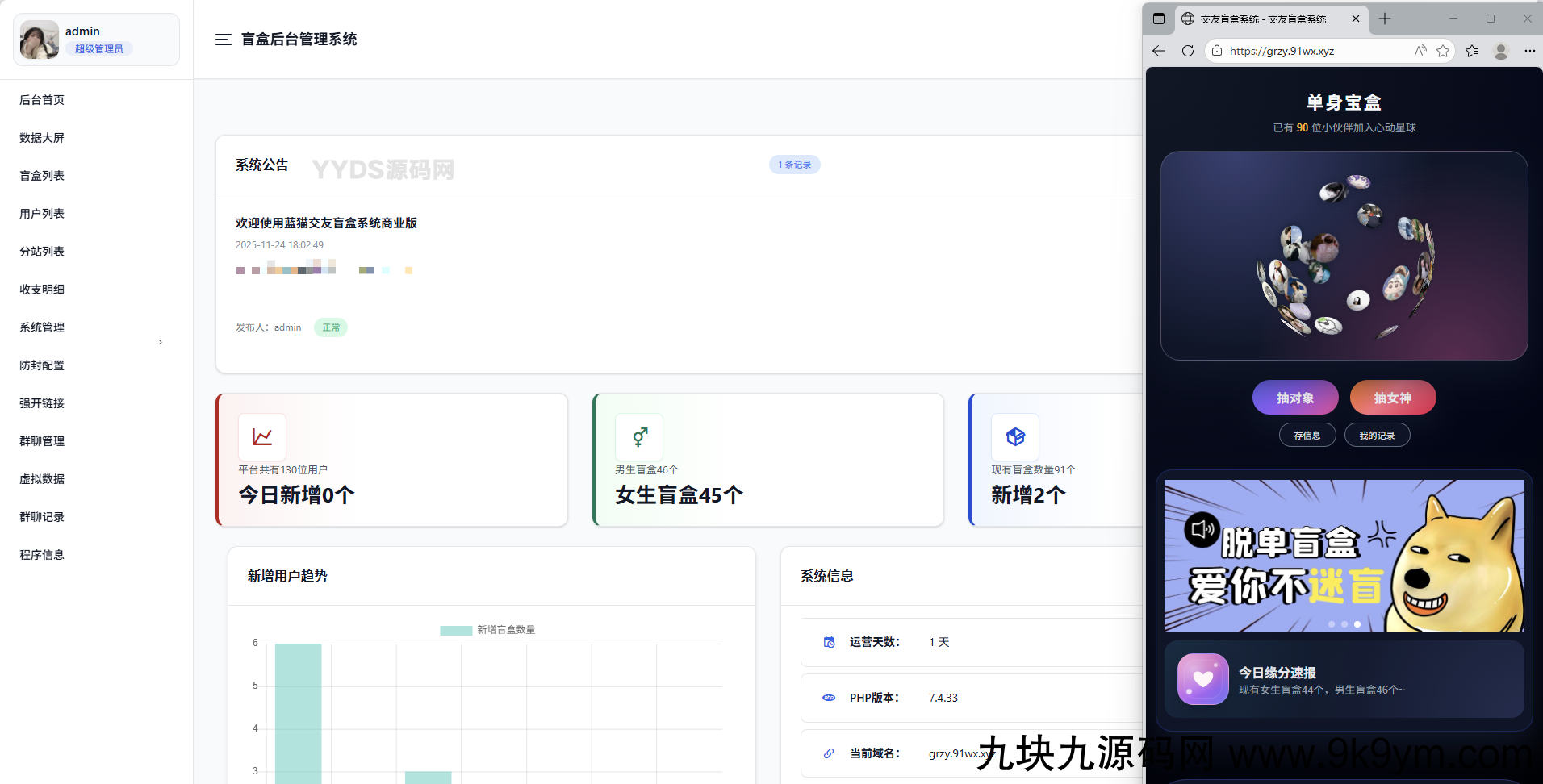 全新后台UI防封入口落地域名的配置COS链接的配置显示用户IP等等已修复:微信号显示0问题月老站点配置价格必须大于0问题