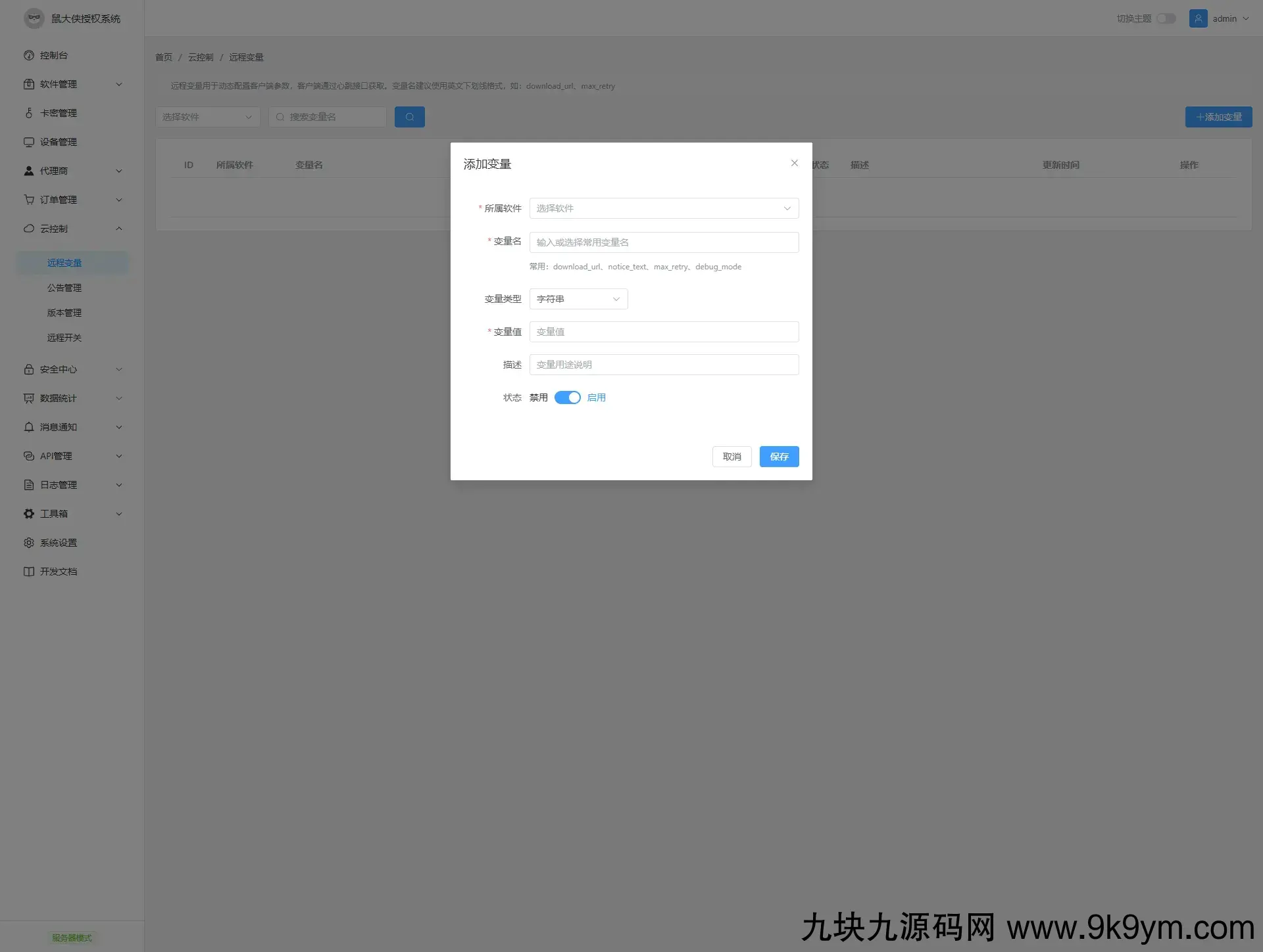 一款专业的软件授权管理系统,支持多软件管理、卡密授权、设备绑定、在线监控等功能。