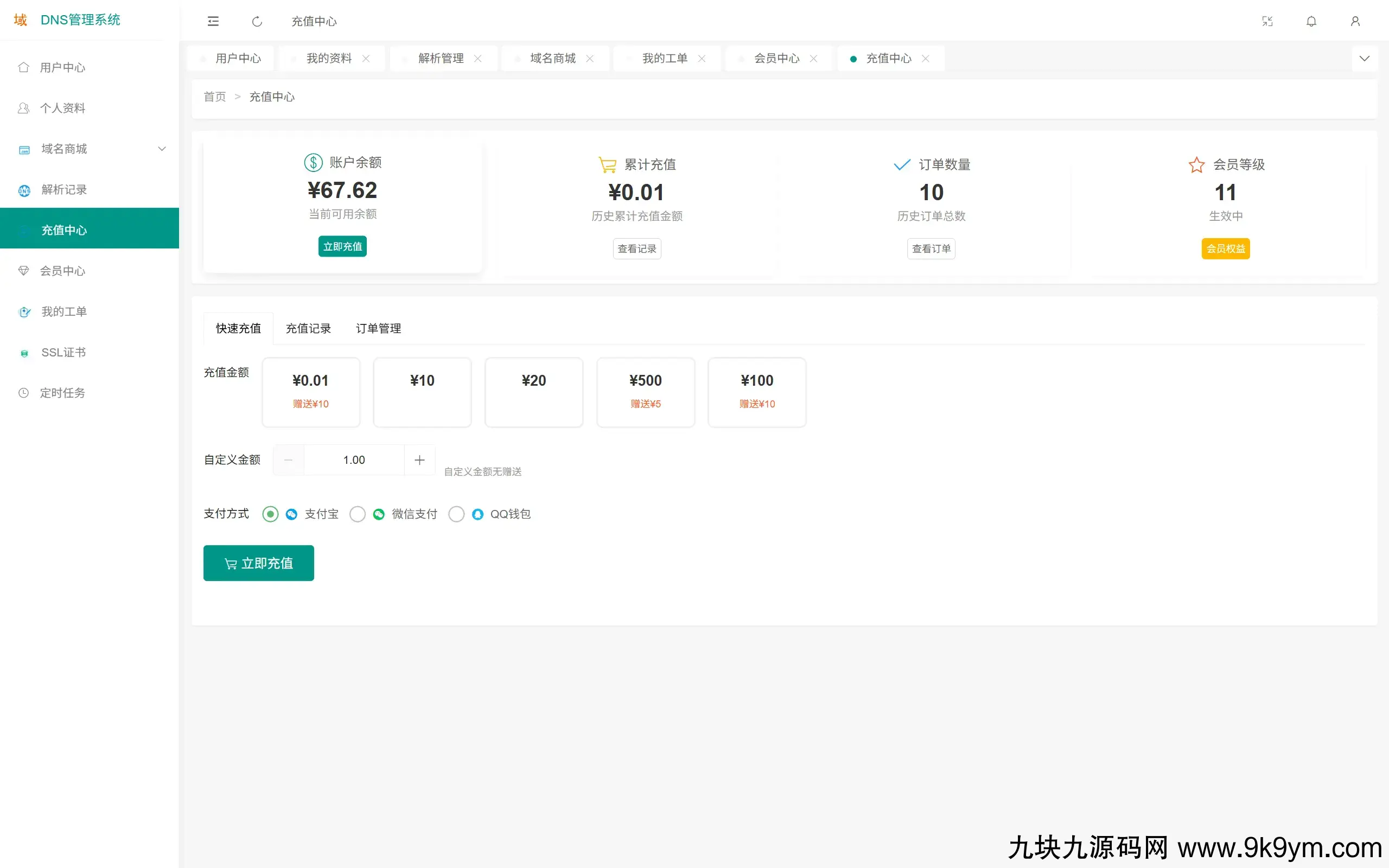 第六步:依次配置DNS渠道、会员套餐、用户管理、实名认证通道、SSL证书商、域名管理…等相关功能配置