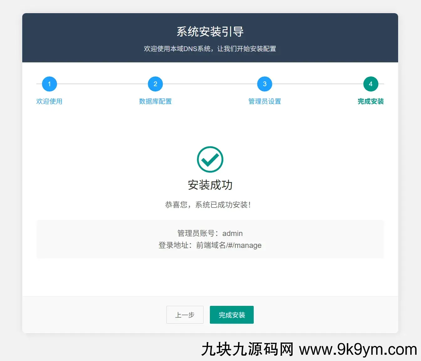 第三步:上传后端源码至站点并解压 --> 伪静态ThinkPHP,运行目录public --> 访问域名进行系统安装 --> 输入SQL以及站长相关账户密码信息