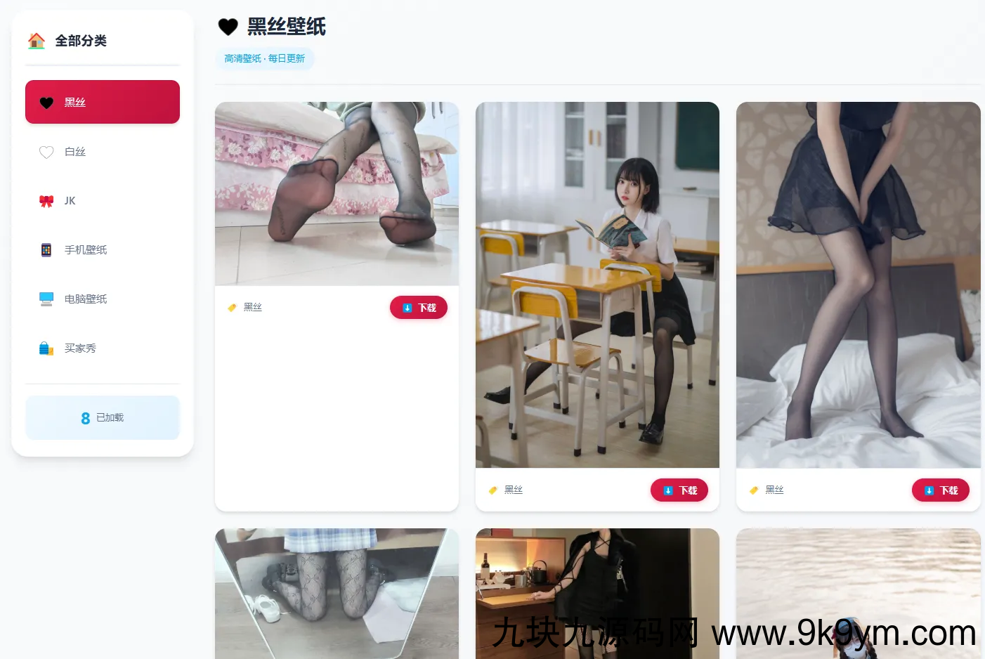 6 大分类:黑丝、白丝、JK、手机壁纸、电脑壁纸、买家秀