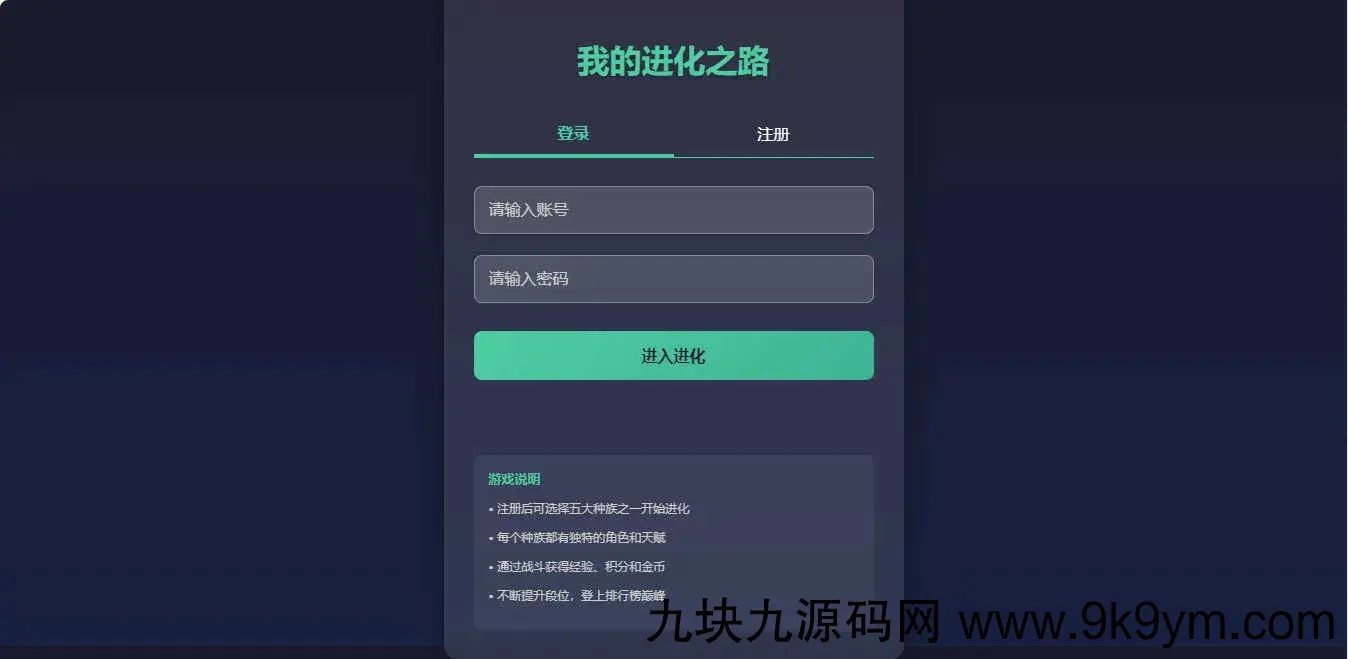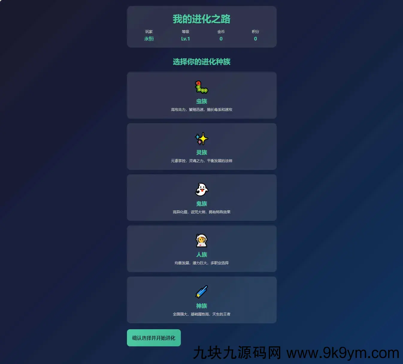 在线战斗,回合制,从五大种族中选择你的种族,并随机获得一个角色,踏上进化之路!网页H5在线小游戏,快速搭建、易上手。