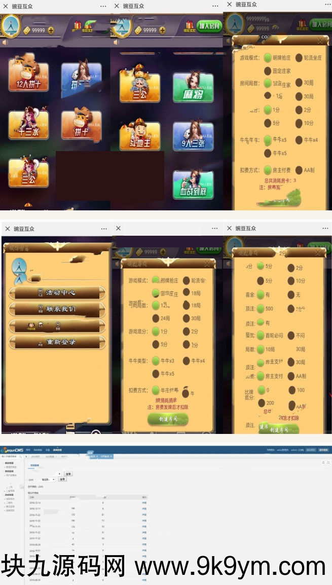 豌豆互娱H5棋牌游戏大厅源码二次开发版 后台可控+透视