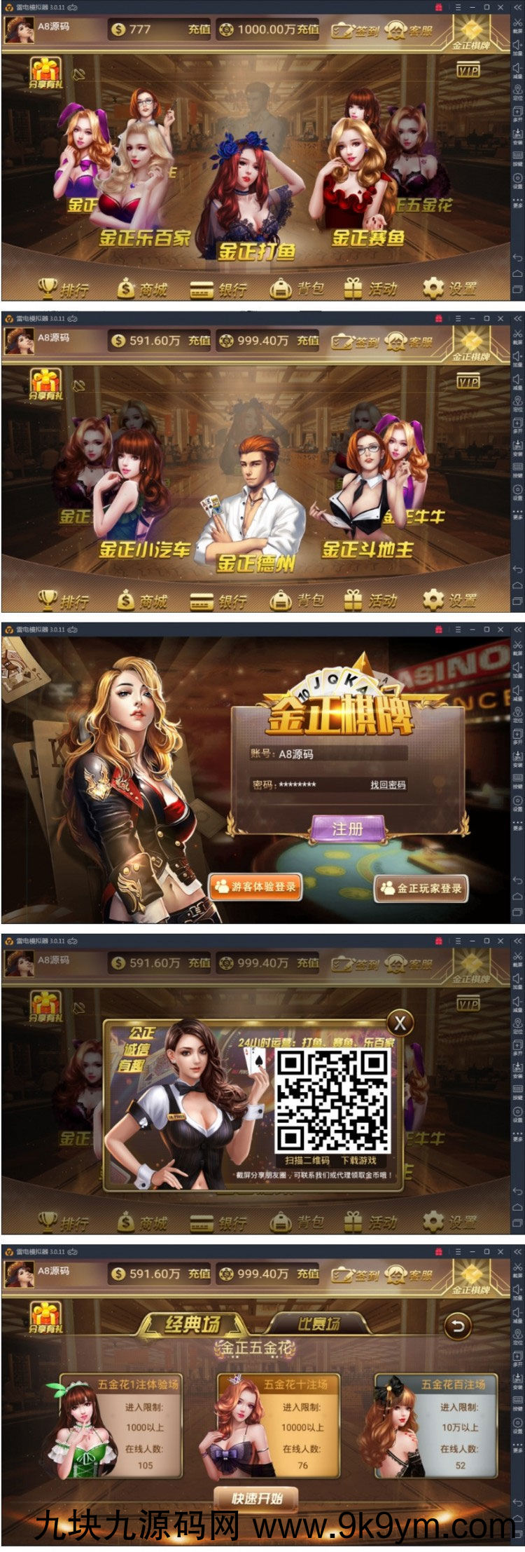 金正棋牌游戏运营版全套源码 含服务端 Android端 iOS端 后台管理 代理系统,不带搭建教程,小白慎下!