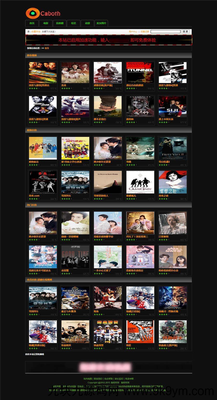 分享一款苹果cms V8版本的caboth黑色风格主题模板,复古简约风格,模板非常简单,只有影视模块,自带许多广告位。
