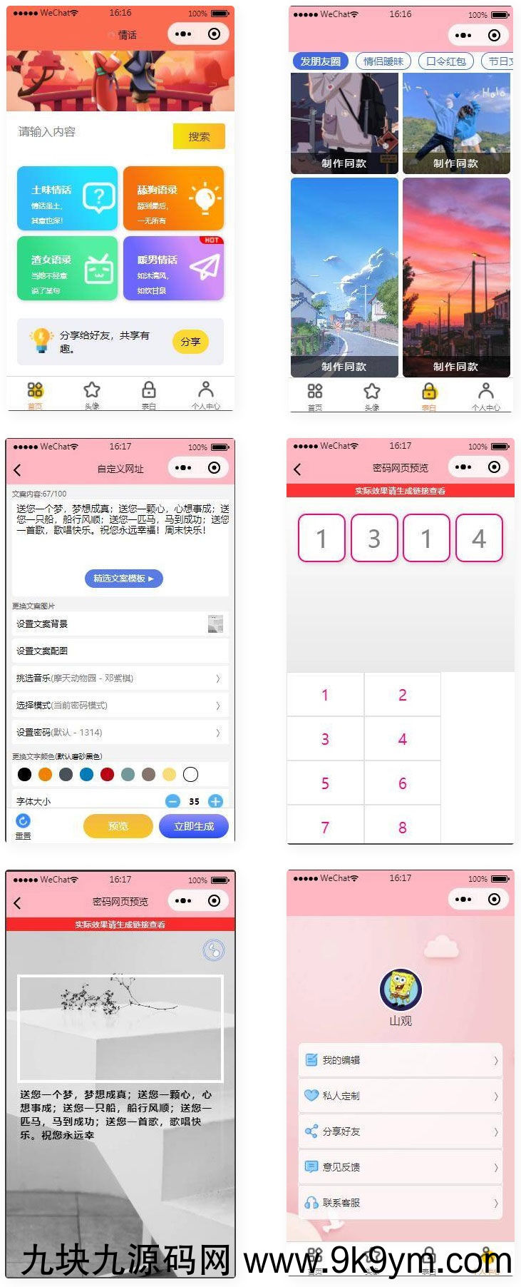 恋爱信封表白制作生成(内含N种文案)、头像转漫画制作、土味情话、舔狗语录、渣女语录、暖男情话等等多种功能使用方法:使用微信开发者工具,导入恋爱小程序源码,然后设置好合法域名提交审核即可,合法域名自己查找添加效果展示特点:无需服务器和域名。