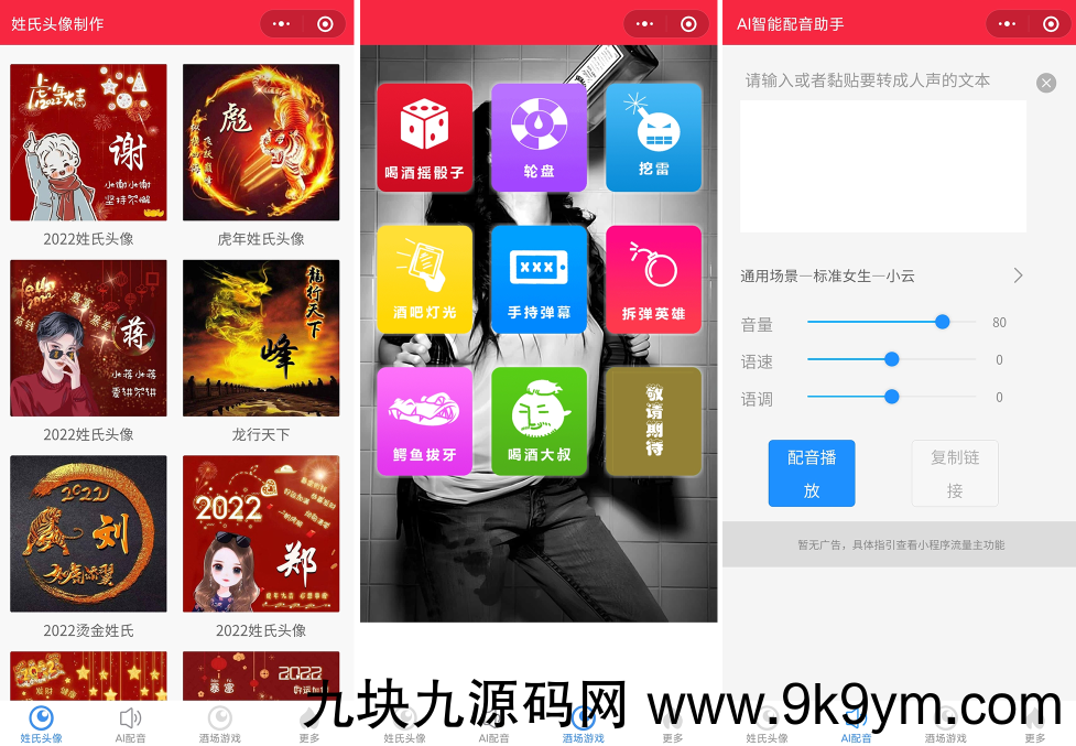 虎年姓氏头像微信小程序源码+文字变音+喝酒娱乐多功能小程序源码