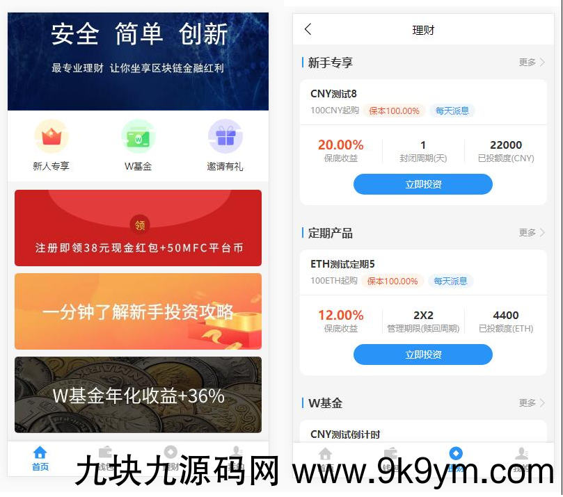 一款投资理财程序源码,可以自行添加货币。支基金产品和定期产品;可产品可设置日结或结束后结算;