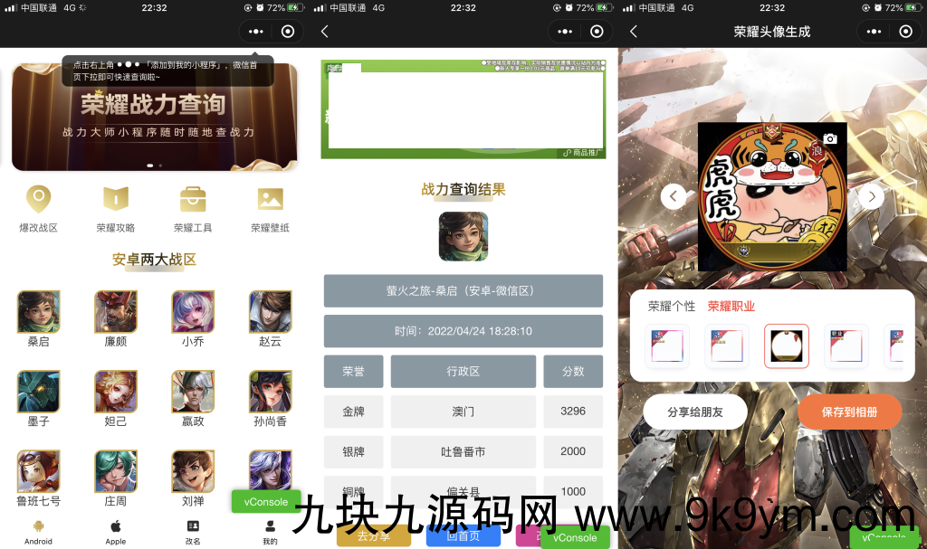这是一款战力查询小程序源码,微信端QQ苹果安卓四端战力查询!!