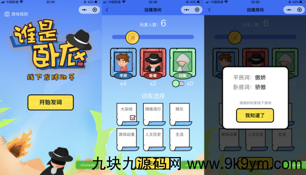 云开发谁是卧底线下小游戏源码,发牌助手微信小程序源码。