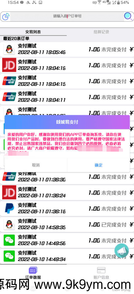 iapp开发易支付APP源码支持大多数彩虹易支付系统,可对接码支付,易支付,以及其他平台,次源码根据彩虹易支付平台API文档编写,如果对接其他平台,可以根据你当前平台的API接口进行对接,一般对接不上就是API文档问题