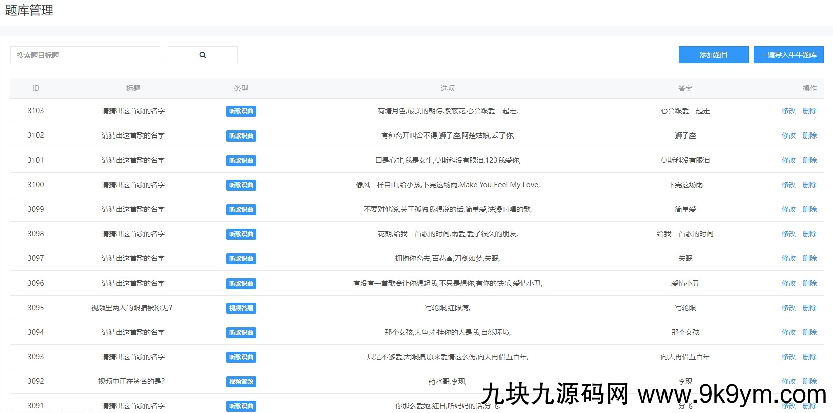 后台管理资源本地化带数据和视频教程,这是一款拥有后端的闯关娱乐小程序。支持个人小程序和企业小程序上线运营功能强大齐全,带数据本地化(数据在自己服务器自己管理无需担心第三方失效的问题)支持看视频答题闯关支持听歌猜歌答题支持流量主模式(后端直接设置即可)支持红包每日任务,邀请好友礼包(团队奖励)支持观看视频获取体力,团队分销模式支持用户签到,连续签到,每日奖励,用户抽奖等等功能所有设置后端即可自行设置