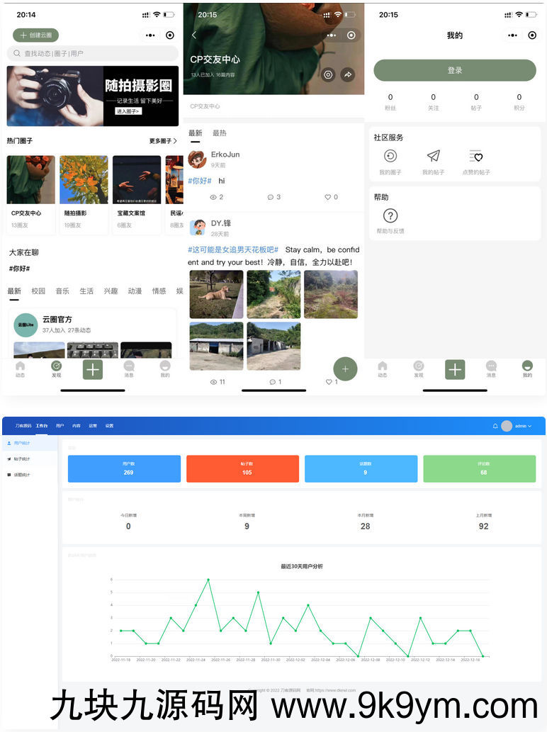 云喵圈子定位为移动端兴趣社区圈子系统,功能分为四大模块,分别为圈子、话题、帖子、商城,基于四大板块衍生出其他功能模块,前后端源码完全开源,完美支持二次开发,可学习可商用。系统架构:uniapp+vue3+thinkphp6兴趣社区圈子论坛程序,后台服务端基于thinkphp6开发,是一套兴趣社区论坛+电商的系统安装教程1、php版本 >=8.02、uniapp端下载后在根目录:utils/config.js中配置站点域名,运行到小程序