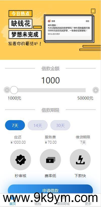 可打包成APP的小额现金贷网络贷款系统源码