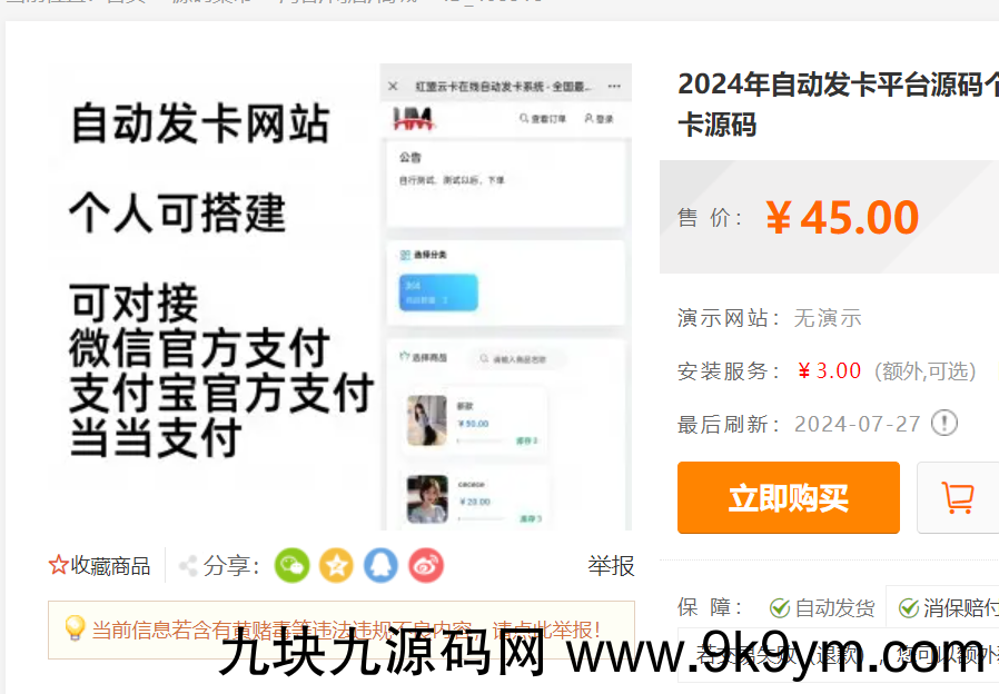 本源码支持商品单页展示,游客下单即发卡密,可用于知识付费,虚拟资源自动发货,推广单页卡密链接或解压密码自动发货等。