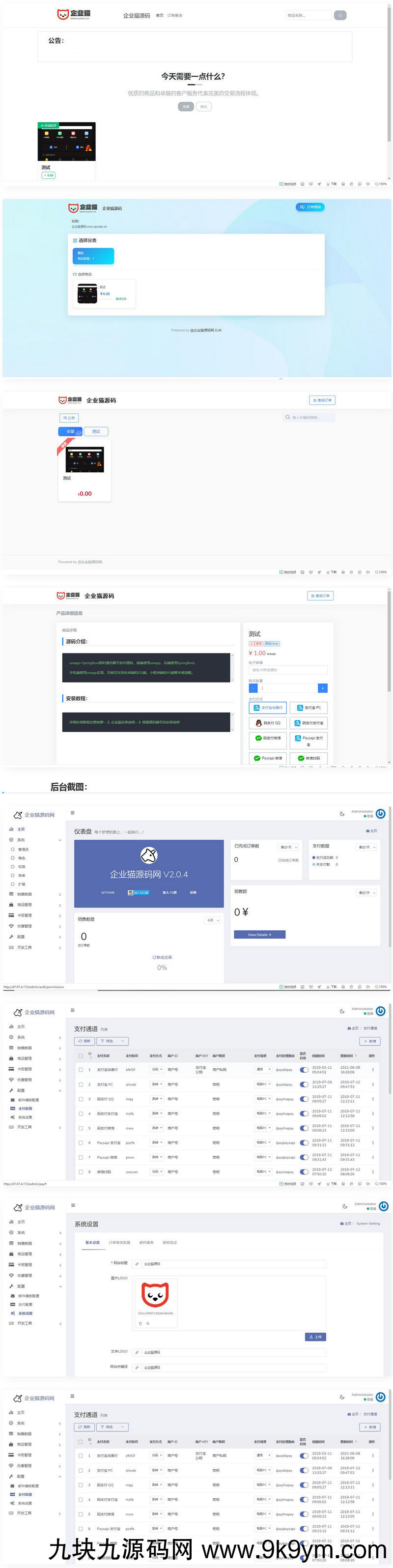 有二十三个支付接口,三套前台模板。由于还得更新其他源码,就填充了一个商品,看起来UI不咋地。但我脑补了下,填充完商品后,应该还是比较好看的。