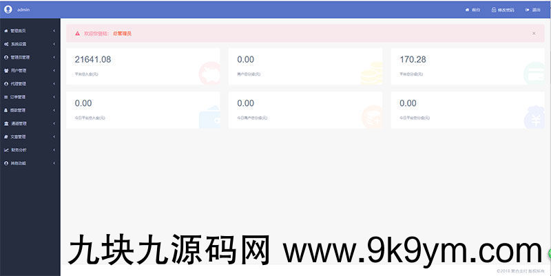 自适应手机版支持代付功能多级分销代理,支持支付宝、微信原生官方接口,原生官方无需上游即可完成通道; 短信接口已对接,如需注册申请阿里的短信接口。全响应式前端界面,简约易操作,安全便利快捷,为你稳定服务。功能包括资金记录、订单记录、收益统计和渠道分析等。