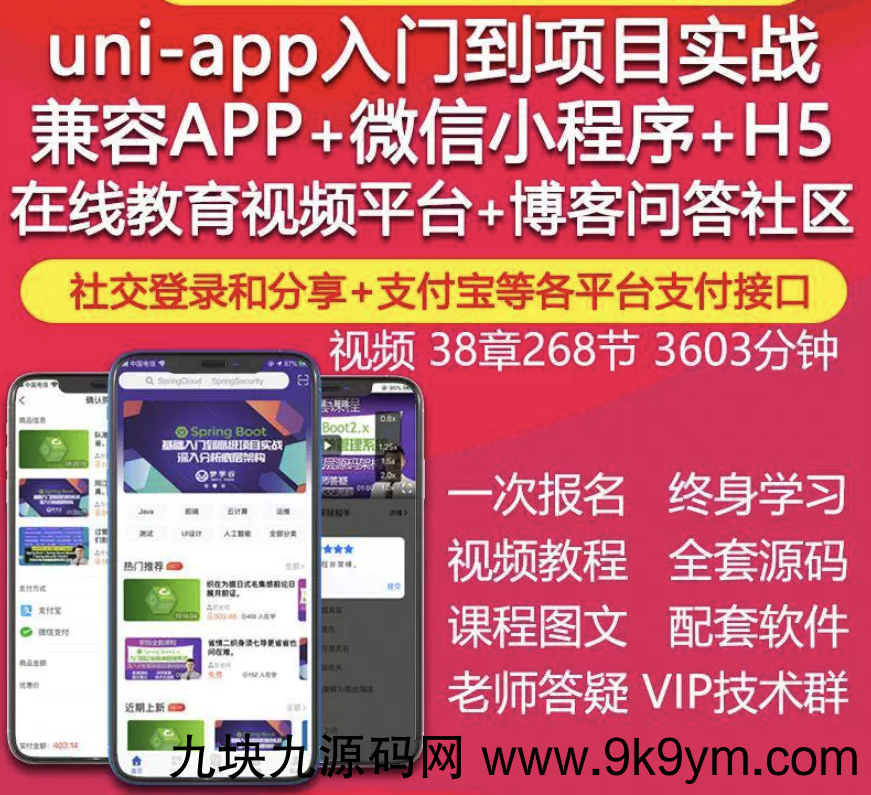 uniapp视频教程IOS安卓APP微信小程序H5在线教育项目实战开发源码