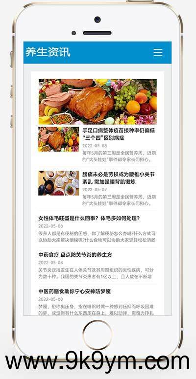 PbootCMS内核开发的网站模板,该模板适用于新闻博客网站、养生资讯网站等企业,当然其他行业也可以做,只需要把文字图片换成其他行业的即可;