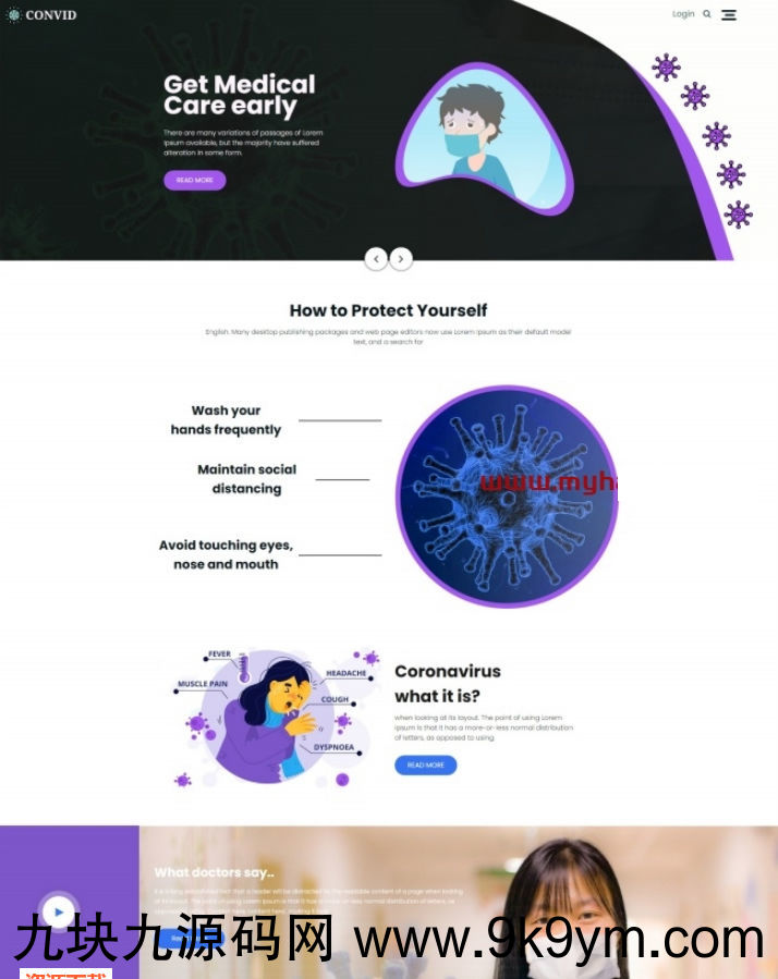 预防新冠肺炎医疗保健网站模板是一款预防新冠肺炎宣传、治疗、保健服务的医疗机构网站模板下载。提示:本模板调用到谷歌字体库,可能会出现页面打开比较缓慢。
