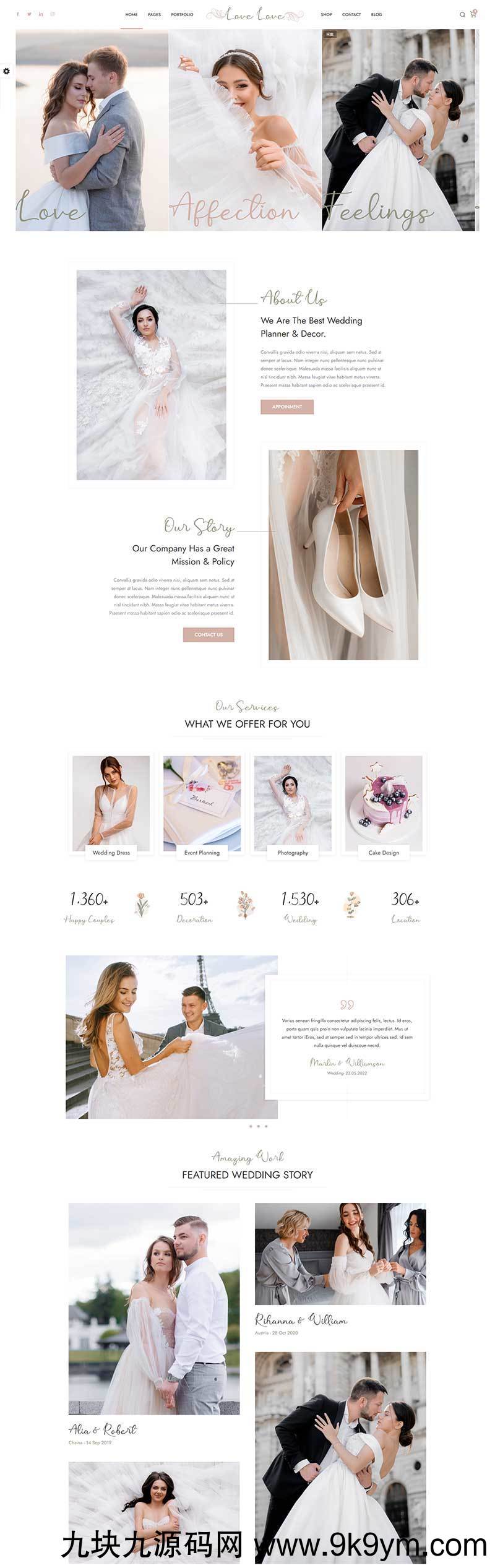 HTML5婚庆婚饰婚纱摄影服务网站模板是一款适合从事婚庆、婚礼饰品、婚纱摄影等服务HTML5网站模板下载