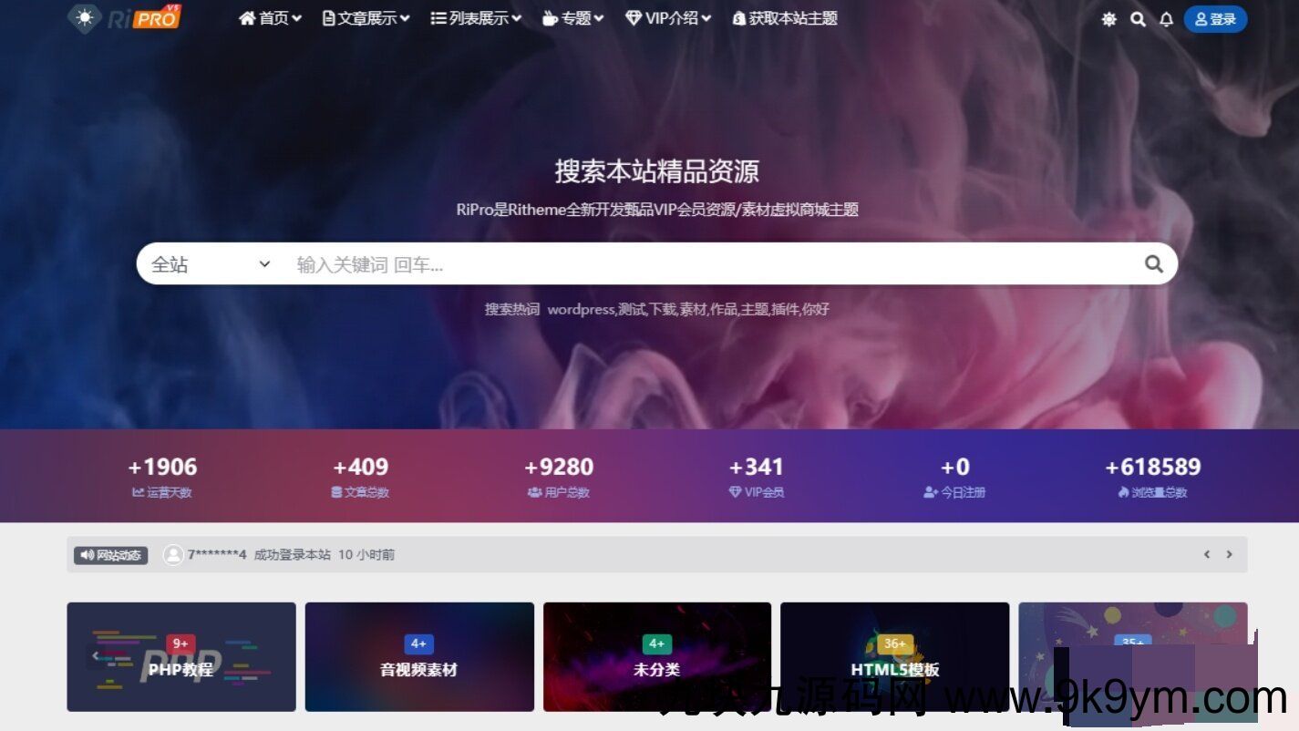WordPress子主题RiPro-V5van无授权全开源版,直接上使用方法:WordPress后台上传就行,这个主题是1.0版本开源的,有能力的可以二次开发一下加一些自己喜欢的功能。