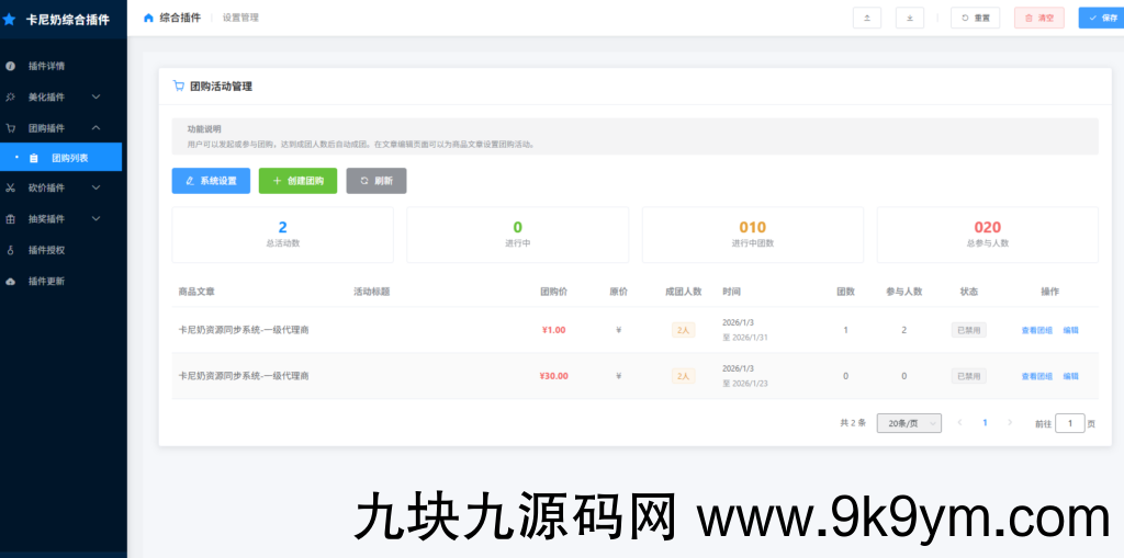 * 功能亮点: 激发用户社交裂变,快速提升网站商品销量和用户活跃度。