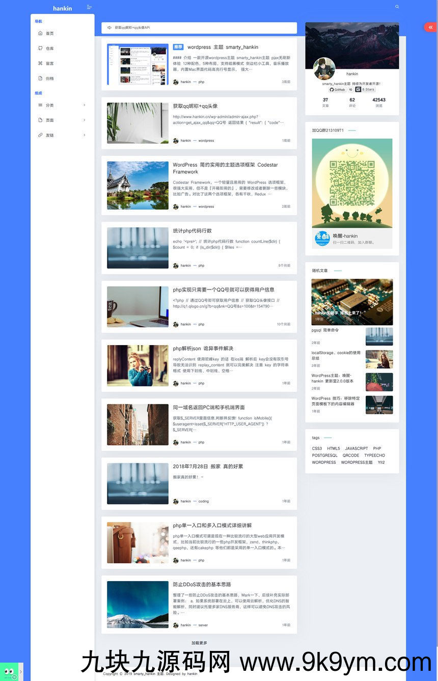 WordPress主题 Hankin v2.0.1博客主题模板