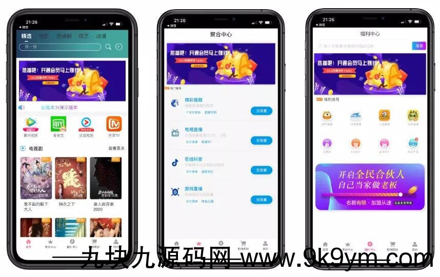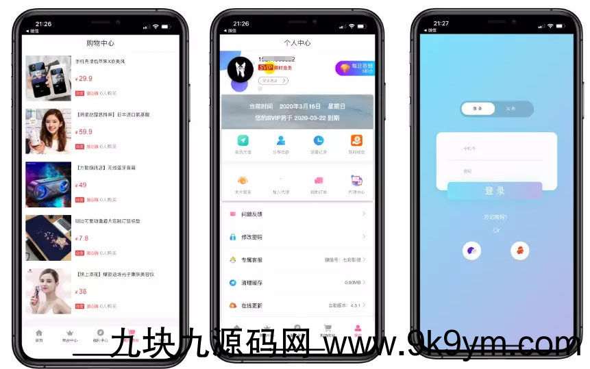 安装说明:前后端将域名替换为你的域名;名称:通霸V5影视 改成你的影视名称;后台登录账号:admin 密码:admin6662020.3.18号更新1.后端可以选择对接码支付,可以正常充值对接2.购卡返现和购买代理返现问题已经修复,三级分销体系已经修复完成3.让所有用户获取管理员的购卡链接和开通代理链接和代理充值链接2020.3.6号更新1.已修复腾讯爱奇艺播放问题,更换了播放规则新样式2.修复了钱包余额功能,修复了商城系统3.更新了首页和登录页面渐变色一套UI