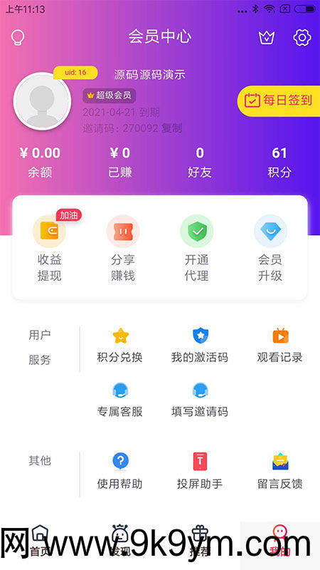 10.每日签到,佣金体现,头像/昵称自定义