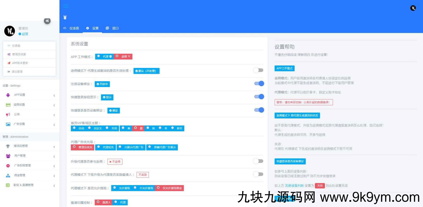 13.后台控制版本更新,设备绑定,注册开关,邀请码自动识别。