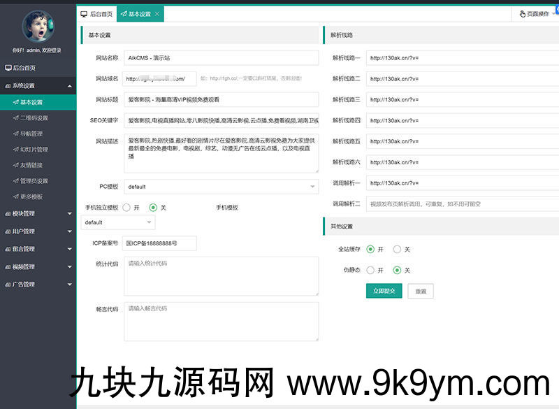 会员尝鲜中心,自动尝鲜、手动尝鲜、一键资源网采集,支持淘宝客和京东客设置,对接公众号,支付管理,模块管理,广告联盟设置,留言管理,公告设置,缓存管理,伪静态等