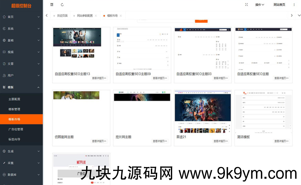 后台模板市场里有9套模板,不过模板市场有时候打开速度较慢,卡的时候需要多次刷新安装教程: