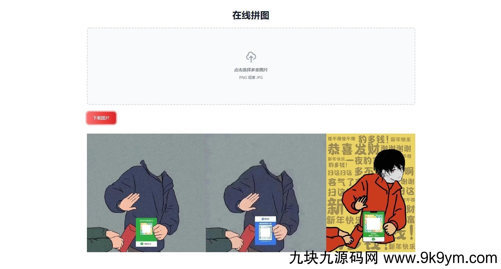 一款在线多张图片拼图工具HTML源码,在线将多张图片拼接成一张图片,并导出下载。无需本地安装软件。下载时,使用日期时间作为文件名,规避图片文件名相同造成的覆盖问题;也能省去一部覆盖确认操作 多语言支持