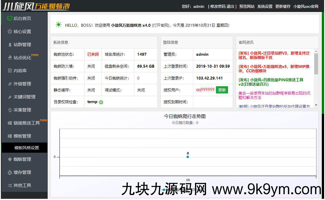 小旋风蜘蛛池站群系统源码X4版本(原小霸王蜘蛛池),繁体+SSL+熊掌自推送+转码蜘蛛池站群网站快排